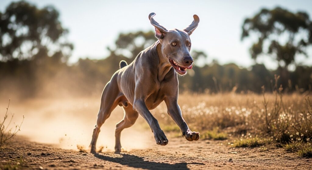 Also known as the “Grey Ghost” for its sleek, silvery-grey coat and hauntingly beautiful eyes, the Weimaraner is a powerhouse of grace and athleticism.