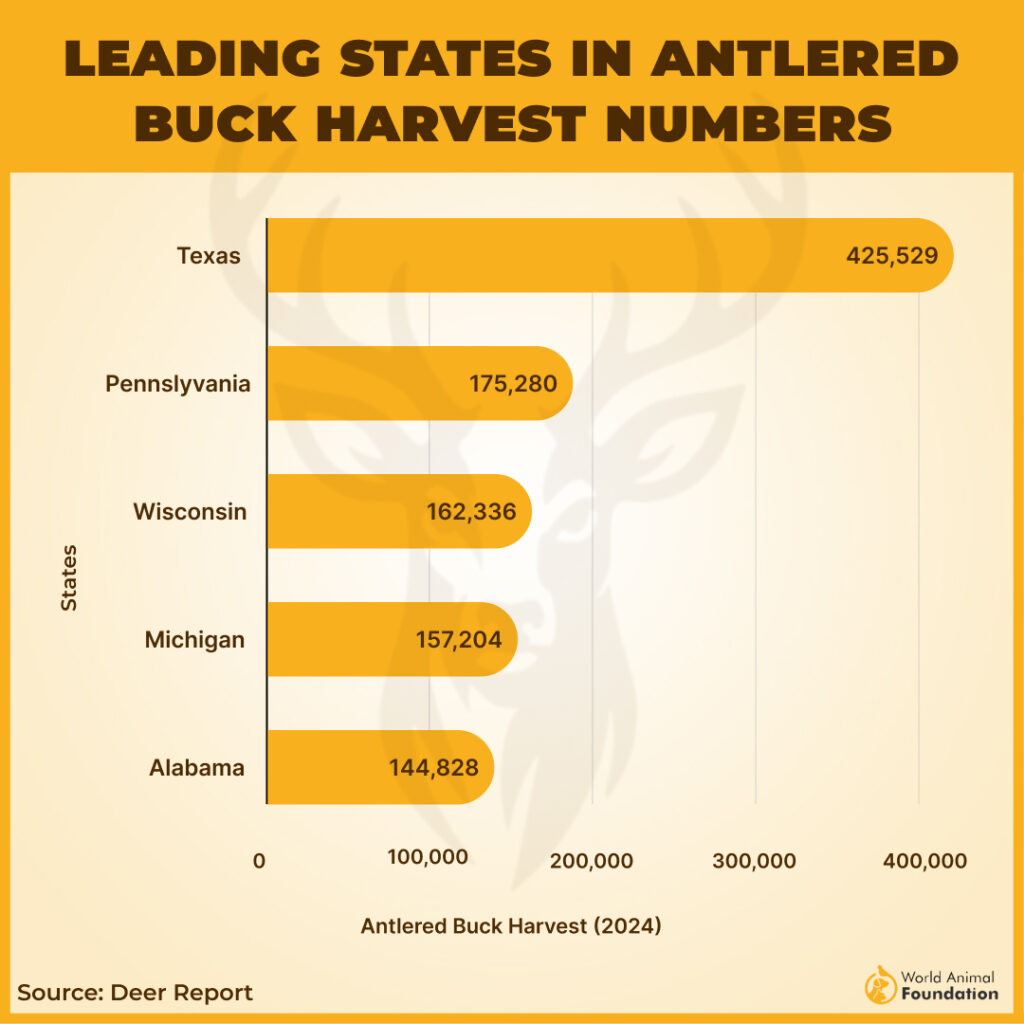 According to the New Deer Report, Texas Had the Highest Buck Harvest of 425,529 (Deer Report)