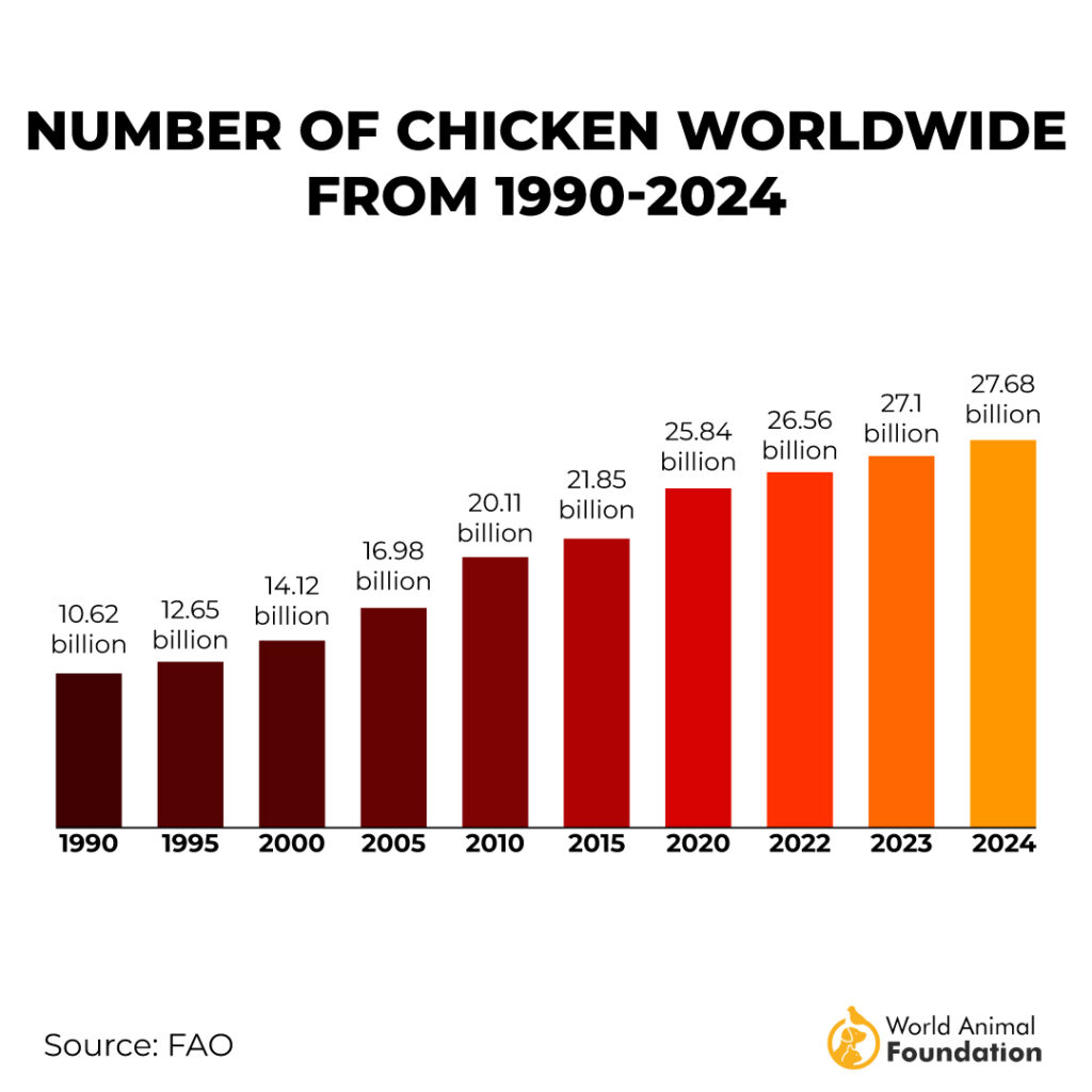 - As of 2024, There Are Almost 27.68 Billion Chickens in the World