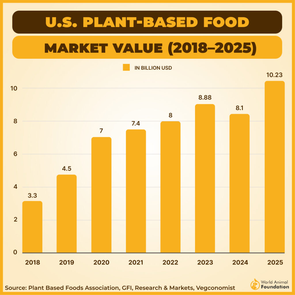 The United States plant-based food market is expected to grow from $10.23 billion in 2025 to $27.74 billion by 2034. This growth is driven by a steady stream of new products and more options becoming available in stores.