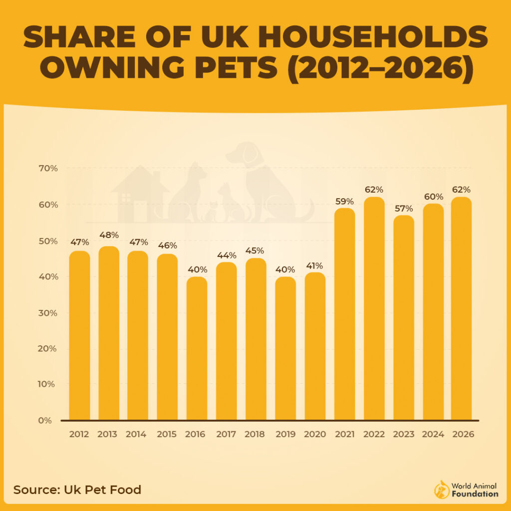 At a glance, 62% of British adults own 36.5 million pets. The UK Pet Food (formerly known as the Pet Food Manufacturers Association) has a vested interest in UK households that own a pet.