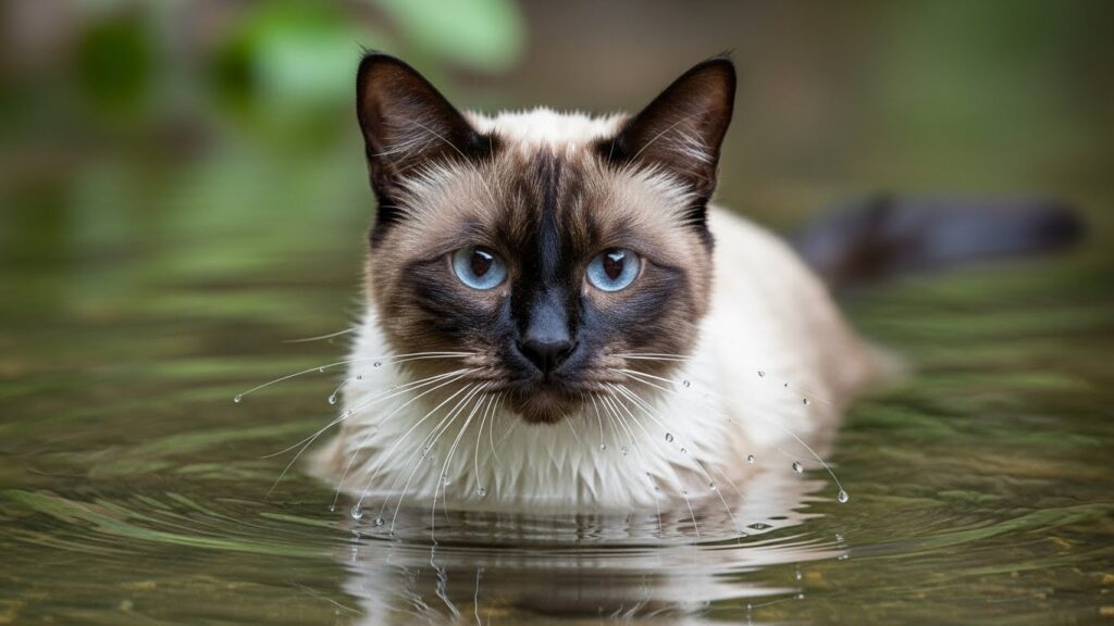 Fun fact: Siamese cats are so fascinated by water that they often “assist” their owners at sinks and bathrooms, splashing and observing closely.
