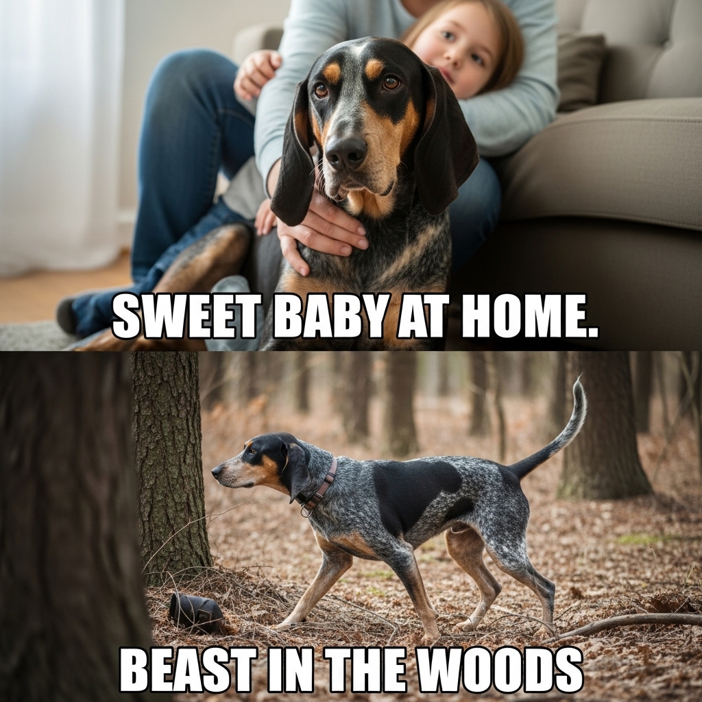 Bluetick Coonhounds are born trackers with an extraordinary sense of smell and endless stamina. They are known for their “bawl mouth” bark, a long, melodic call that helps hunters follow their trail, even at night.