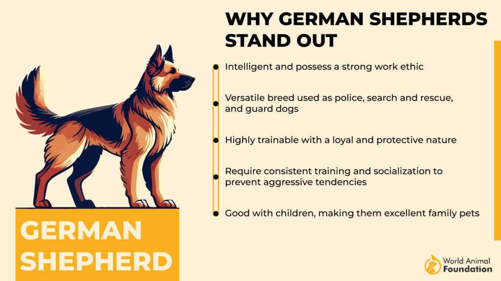 According to Purina, while German Shepherds are fiercely loyal and protective, they’re not quick to warm up to strangers. Building trust with these remarkable dogs requires time and effort from an early age, but once earned, their loyalty is steadfast and unshakable.