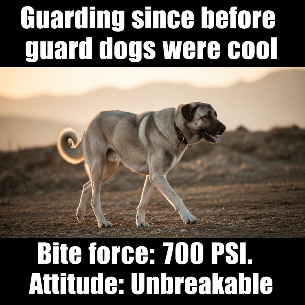 Anatolian Shepherd Dog is the living symbol of ancient canine power that rules the tribe with the strongest bite force. This breed is the master of reading situations and humans.