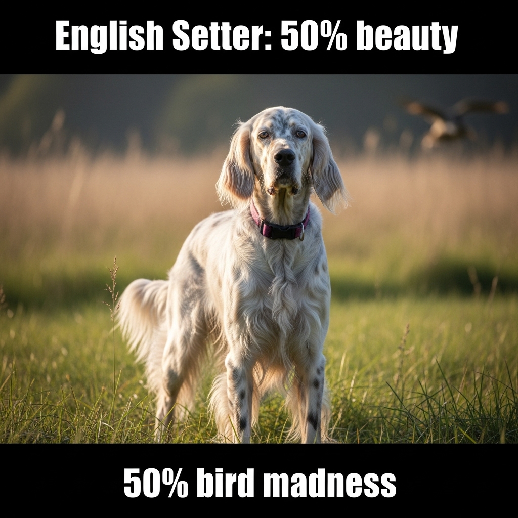English Setter is the elegant artist — the one who turns bird hunting into poetry in motion. Watching a setter work the cover is like watching a ballerina who traded her tutu for a bell collar and a feather obsession.