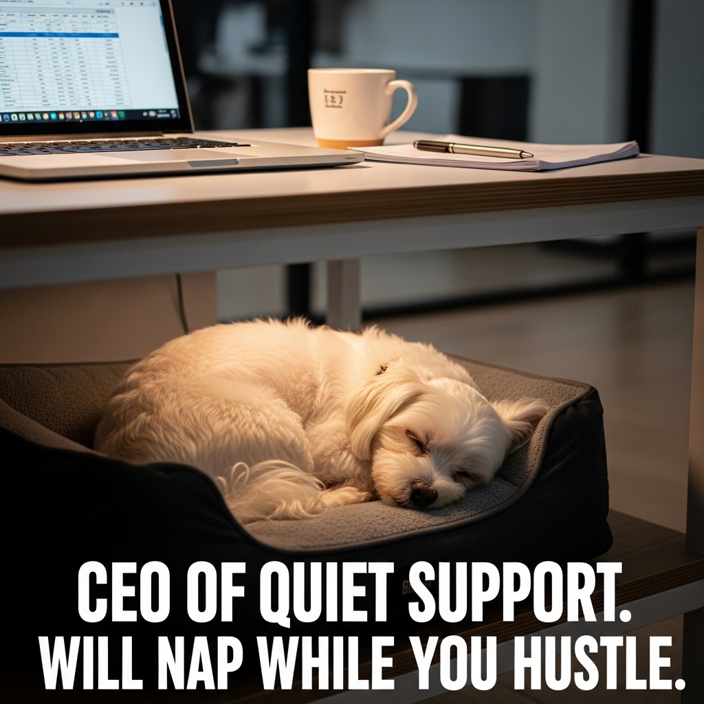 A restless dog in a home office can scatter focus, yet some breeds instinctively settle into the stillness of work.