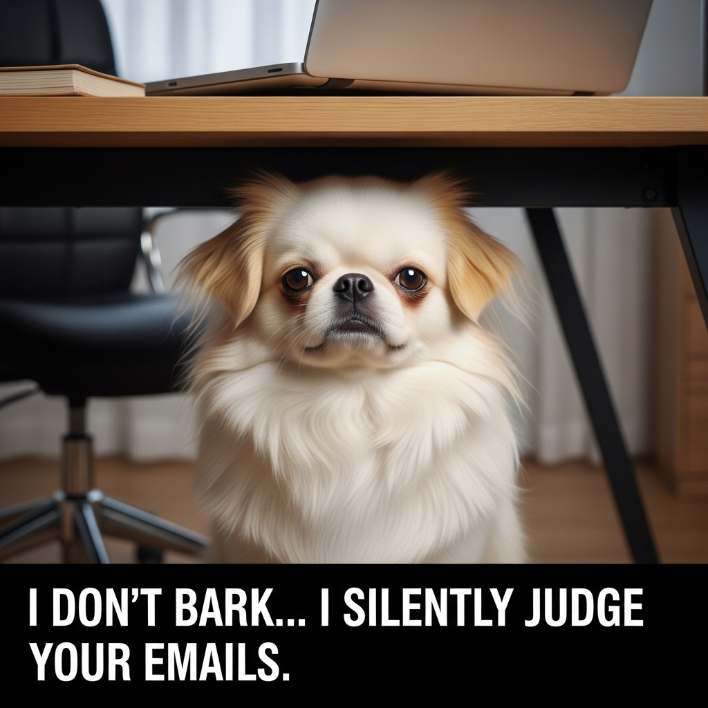 This breed’s profuse coat, plumed tail, and expressive eyes add a touch of sophistication to any setting. They are often described as “aristocratic lapdogs,” and that same refined demeanor extends to how they quietly settle near their owner’s feet during work hours.