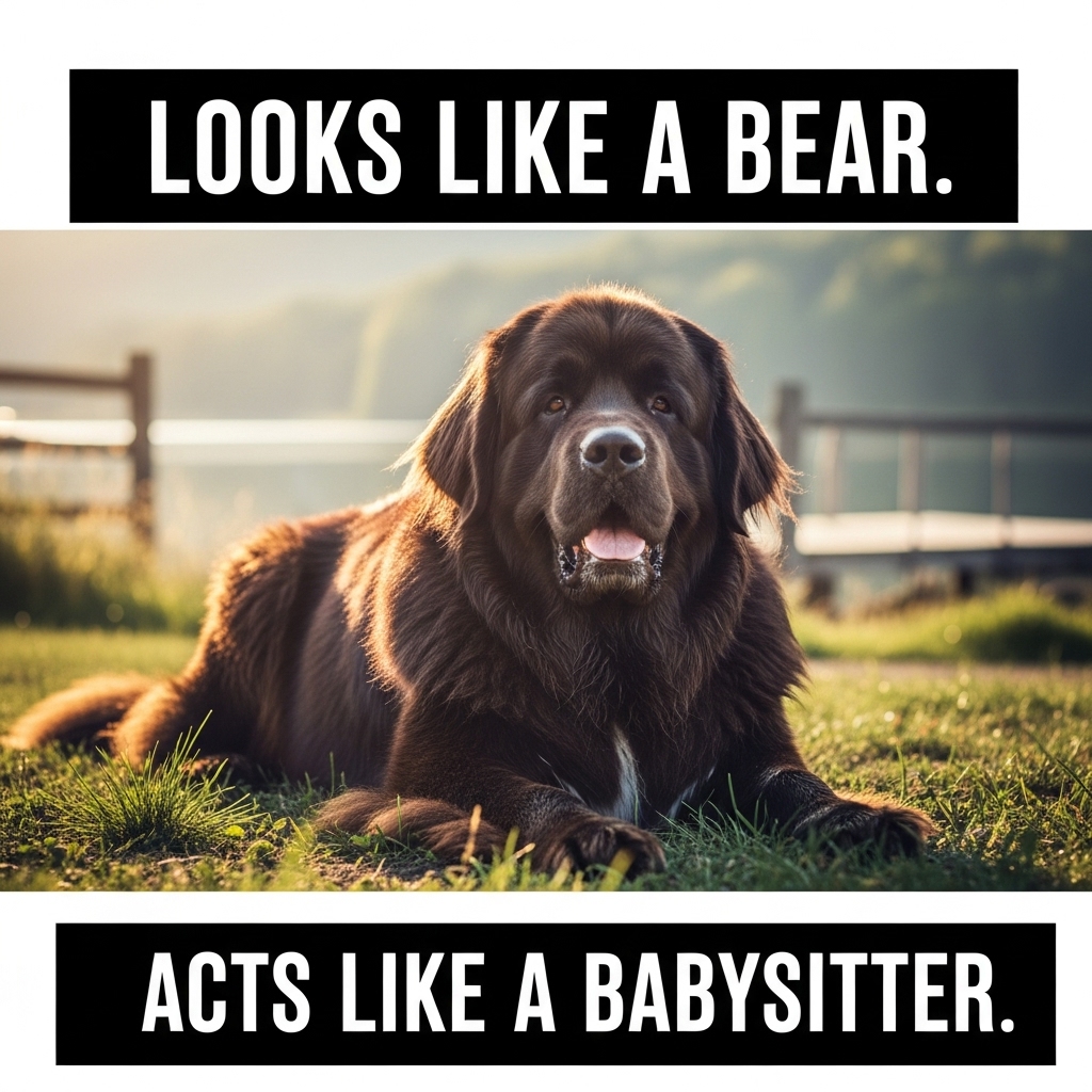Despite their size and power, Newfoundlands are famously gentle and affectionate. Often called “nanny dogs,” they are patient, loving, and wonderful with children.