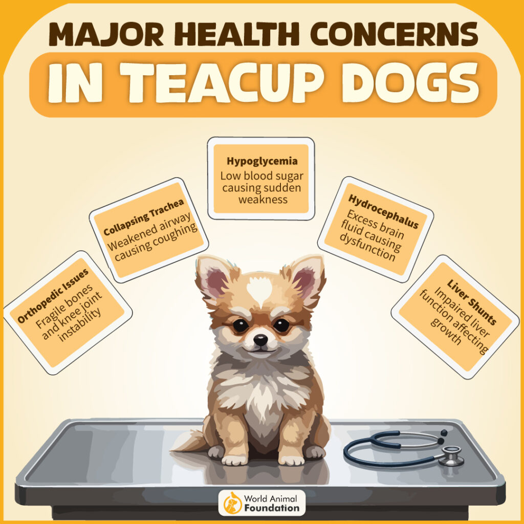 Because of their brachycephalic (short-nosed) structure, teacup Pugs can experience breathing issues and need careful supervision during hot weather or strenuous activity.