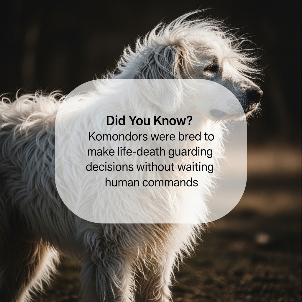 Komondors are calm, watchful, and intensely loyal companions for family members. They don’t bark without reason, but when they do, it means business. Proper training from a young age is critical, especially given their imposing size and independence.