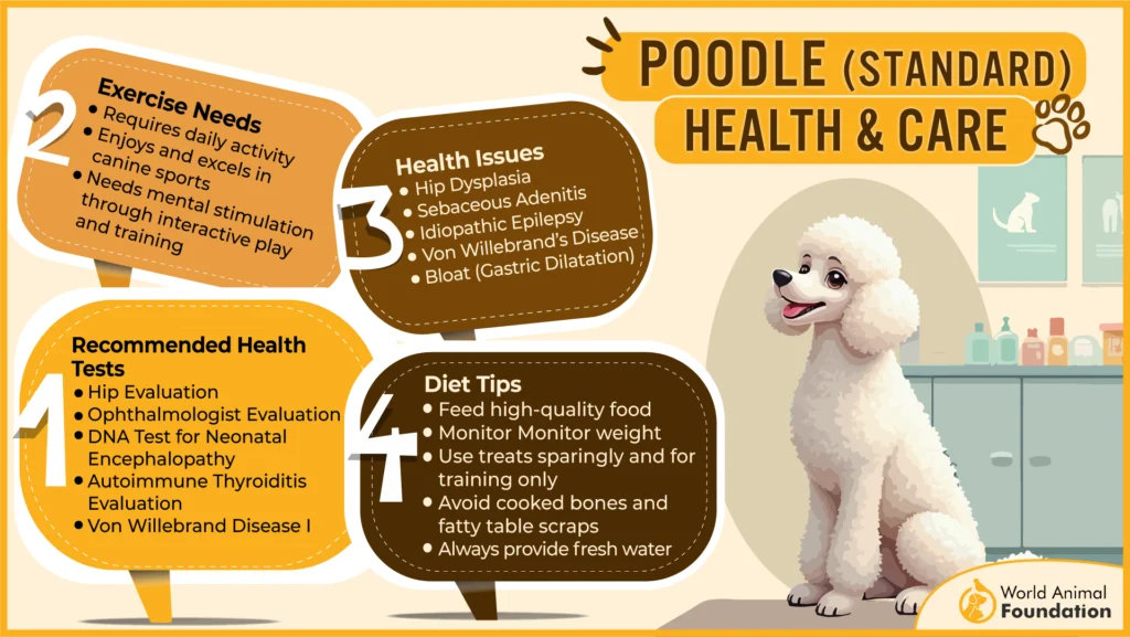 Behind the refined appearance of the Standard Poodle lies a remarkably athletic frame built for speed and stamina. Beneath its elegant curls is a lean, muscular body capable of sharp bursts of motion. This combination of agility and control makes it surprising when it comes to protection and quick response.