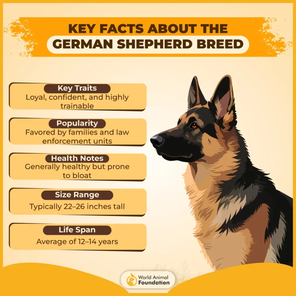 The German Shepherd is the right choice for the experienced, active, or working family seeking a large, intensely loyal, and highly trainable canine partner.