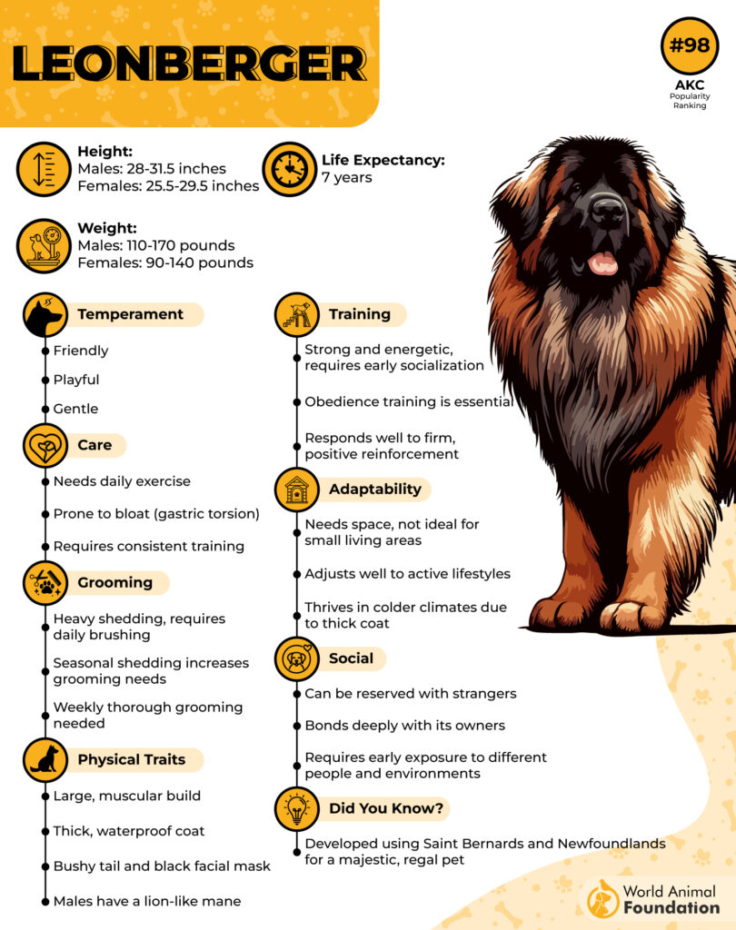 Meet the Leonberger — the majestic “lion dog” from Germany, who looks like they stepped straight out of a fantasy movie. With their massive build, golden mane, and soulful eyes, it’s easy to see why people mistake these large breeds for a friendly lion patrolling the backyard.