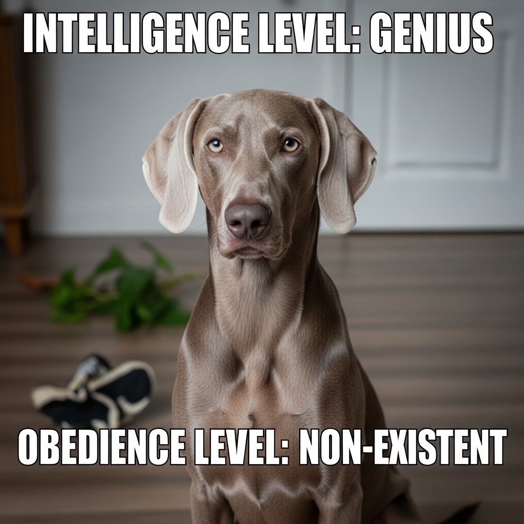 Weimaraners are intelligent dogs, but intelligence doesn’t always equal obedience. Without sufficient exercise or proper training, they can develop destructive behaviors, such as chewing, digging, or testing your patience.