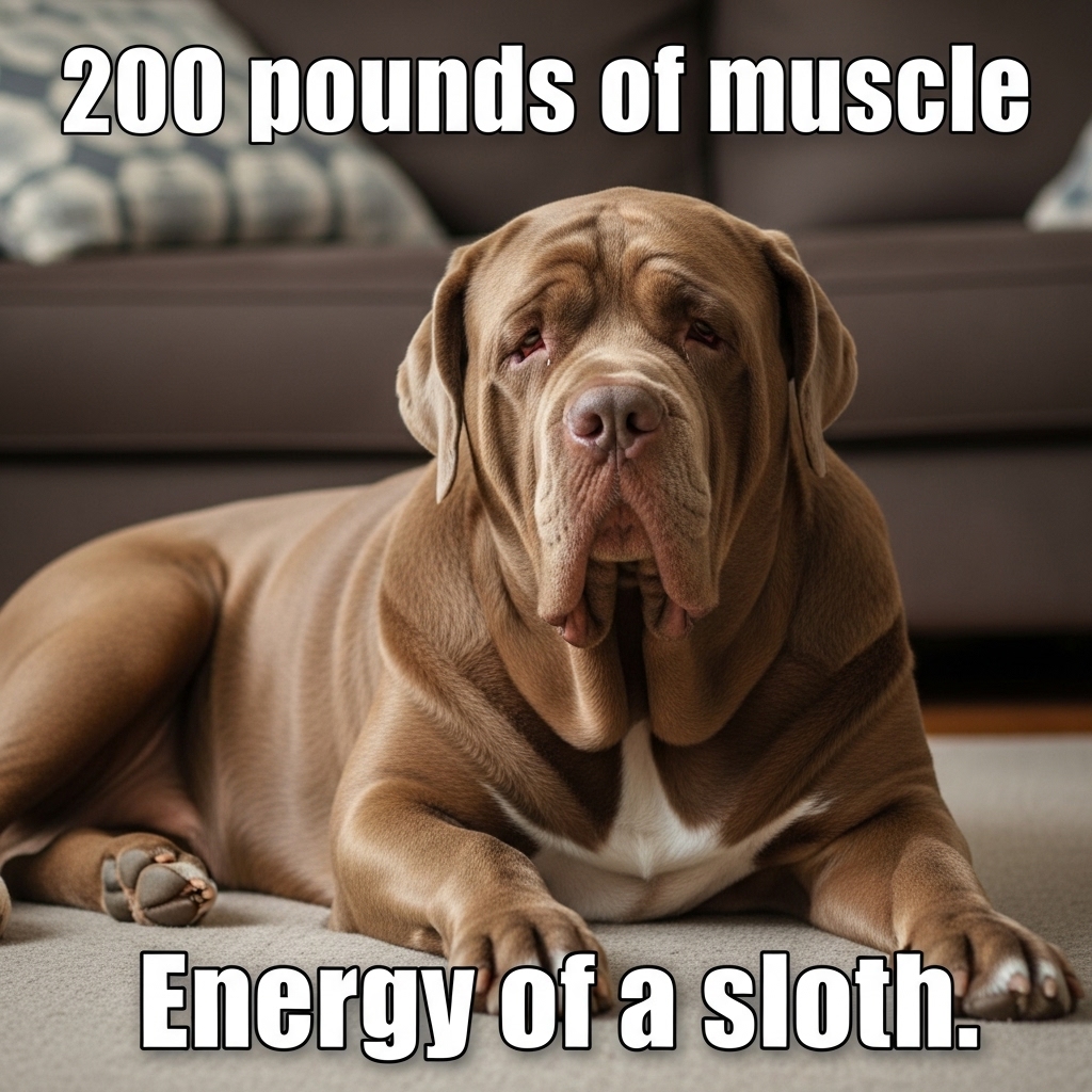 🐶 Which massive, calm dog prefers naps by the couch over constant play?