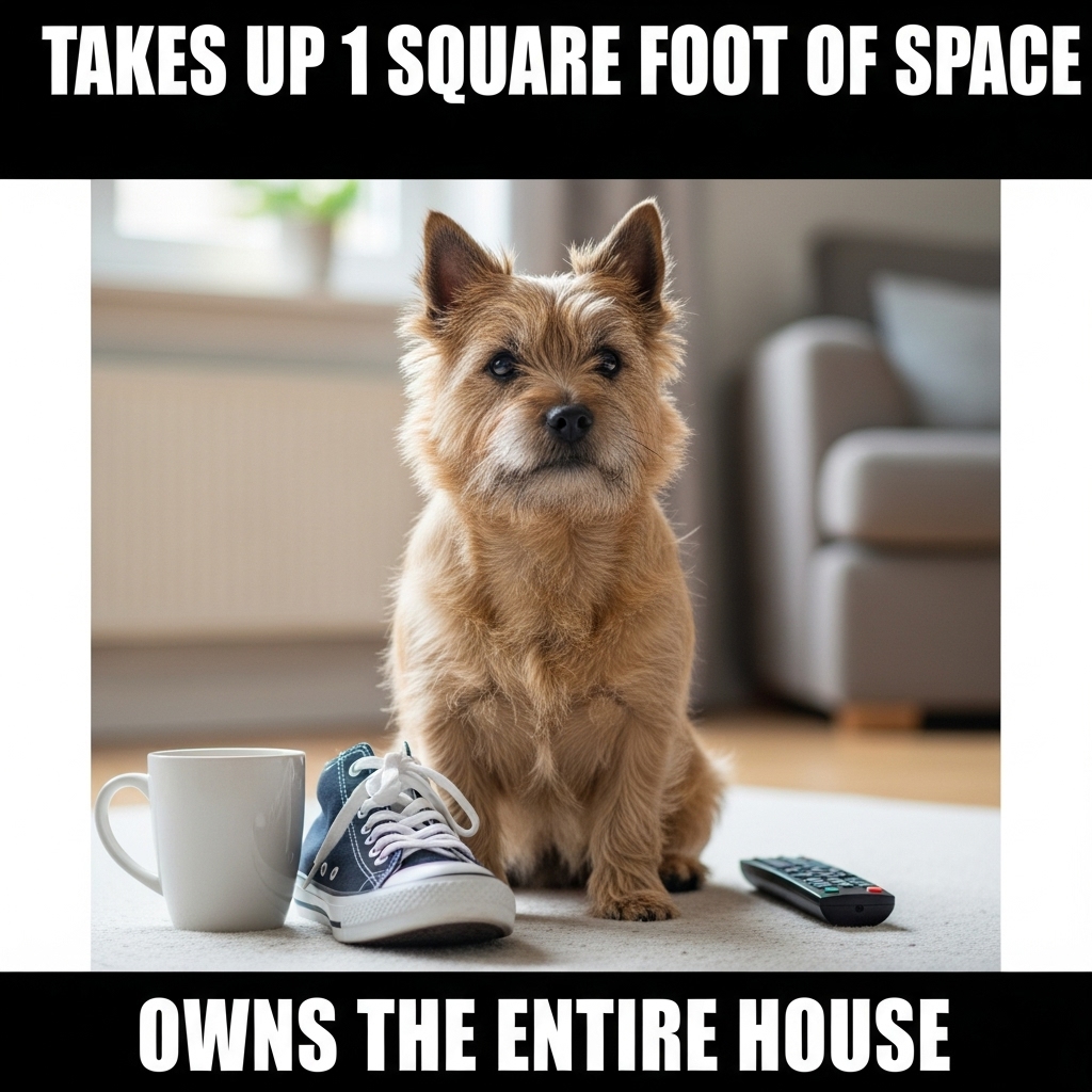 Norwich Terriers bond deeply with their families and make excellent family pets, adapting well to kids and other dogs. Their even temperament means they’re less prone to tiny dog drama.