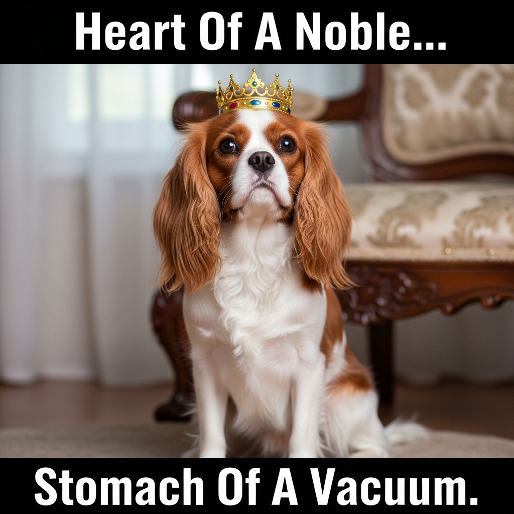 The Cavalier King Charles Spaniel hails from English royal circles, its lineage tied to toy spaniels of the 16th century and the courts of King Charles II; bred for companionship, nobility, and gentleness.