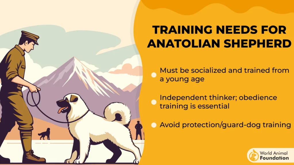 Bred to work independently, the Anatolian Shepherd has a strong-willed nature that requires consistent guidance. Patience, early socialization, and positive reinforcement are essential to manage this powerful breed.