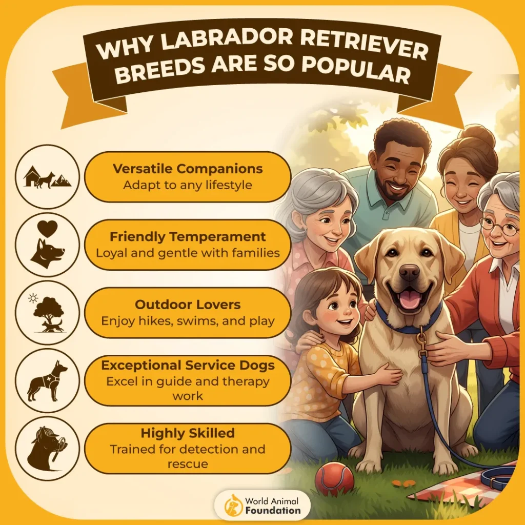 Labs are the loyal workers, and their purpose is to never leave your side, like they’ve been assigned to you. They read your body language and are always ready to help. This makes them wonderfully fulfill service roles, search-and-rescue, and guide work.
