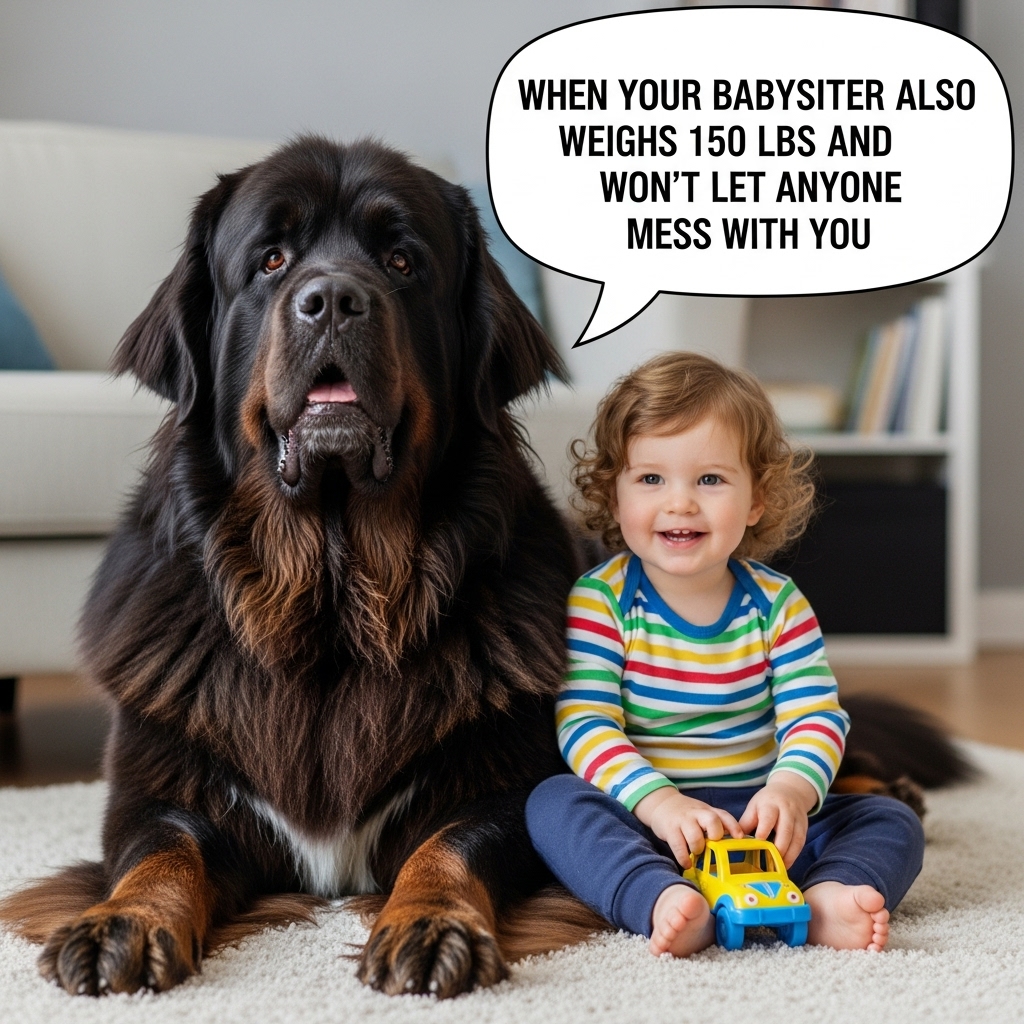 Despite their sweet nature, Newfoundlands remain protective of families, especially children. Their patience and calm disposition earned them the affectionate title of “nanny dogs.” This protective instinct makes them reliable guardians without unnecessary aggression.