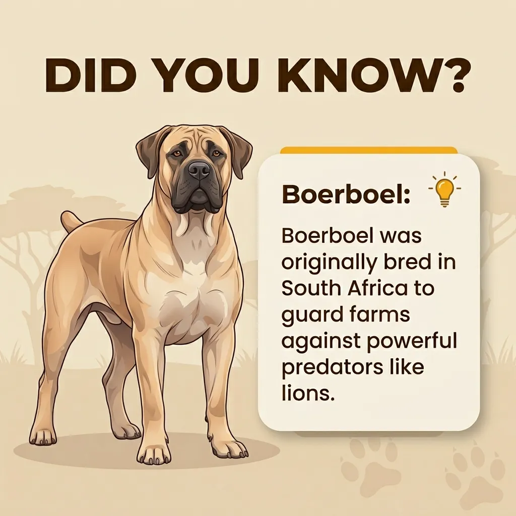 The Boerboel is a powerful dog breed that was bred specifically in Africa for protecting the farm animals from predators. Today, their muscular build and significant weight with sharp instincts of guardianship are enough to deter potential intruders.