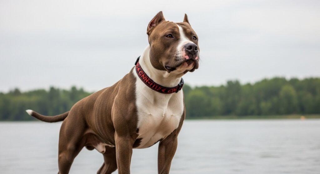 The American Pit Bull Terrier is a prime example of a muscular dog built for both strength and companionship. Medium-sized and athletic, this dog combines a well-muscled body with a loyal and affectionate temperament.