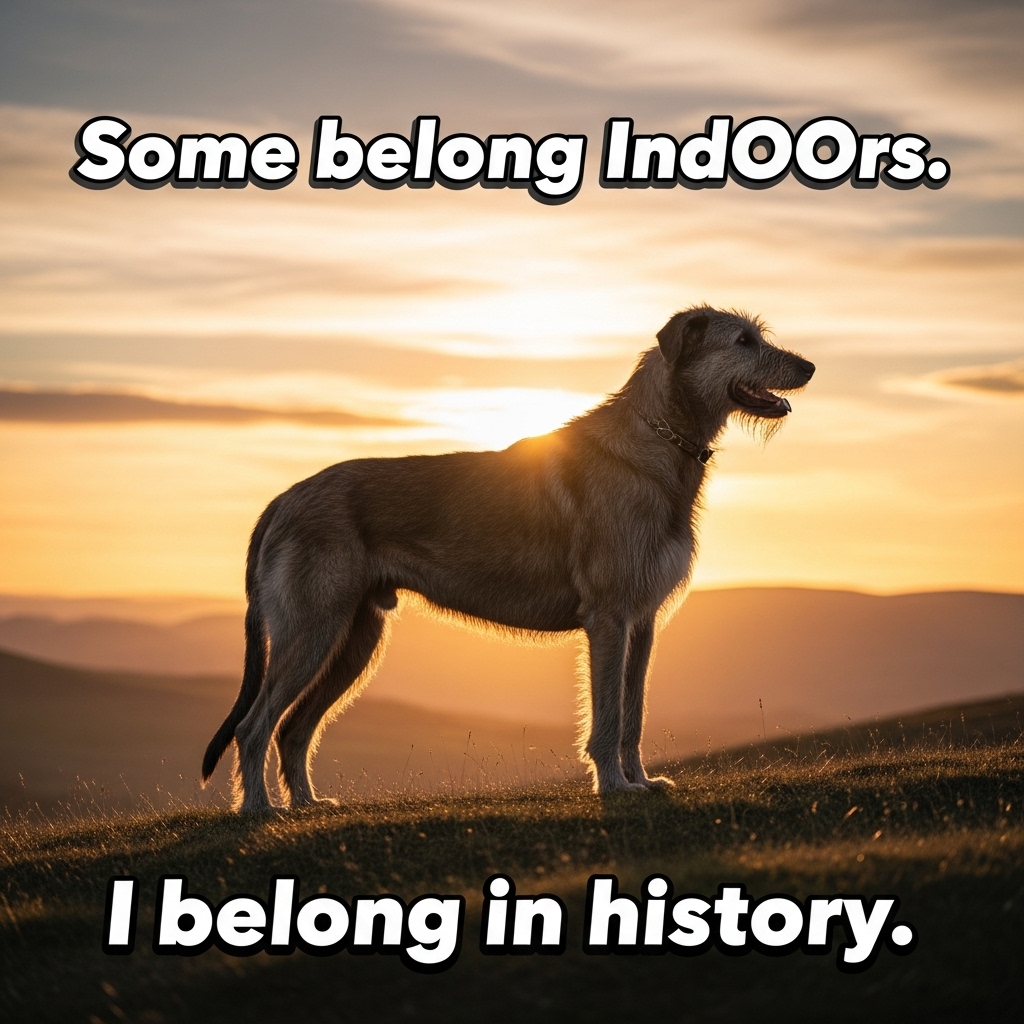 If dogs were fairy-tale characters, the Irish Wolfhound would be the gentle knight — towering, noble, and secretly just a big softie under all that majesty.