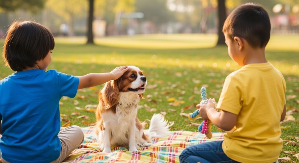 The Cavalier brings a calm confidence that instantly puts kids at ease. They’re patient during playtime, gentle during cuddles, and curious enough to join outdoor activities like picnics, gentle hikes, or even family vacations.