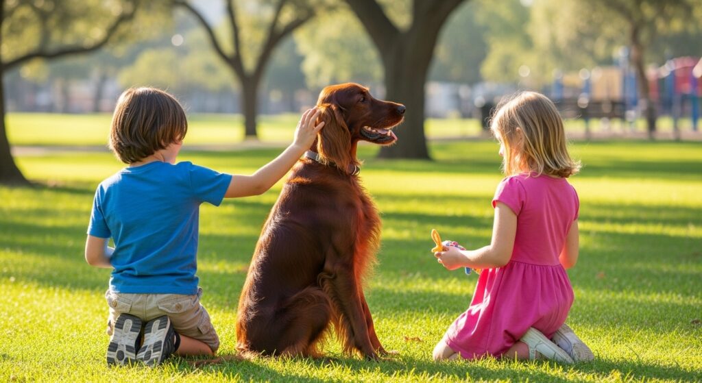 The Irish Setter is the beautiful companions who make family life brighter, louder, and a whole lot more fun. They’re known for their joyful temperament and strong sense of play. This combination makes them excellent family dogs for homes with teenagers or active kids.