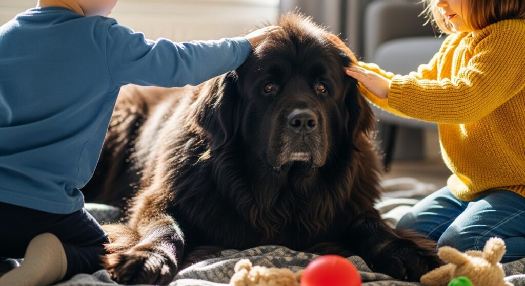 Newfoundland’s calm, nurturing nature makes it a top choice for families with children. They’re patient, devoted, and protective. This mix turns them into the ultimate canine babysitter.