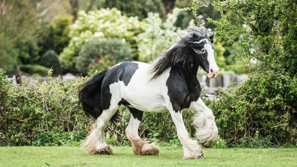Gypsy Vanner horses impress with their sturdy, wide frame and striking pinto-like coats. Their flowing mane and tail give them a dramatic presence, making them instantly recognizable on any trail. While compact, their solid build demands a rider who can match their strength and rhythm.
